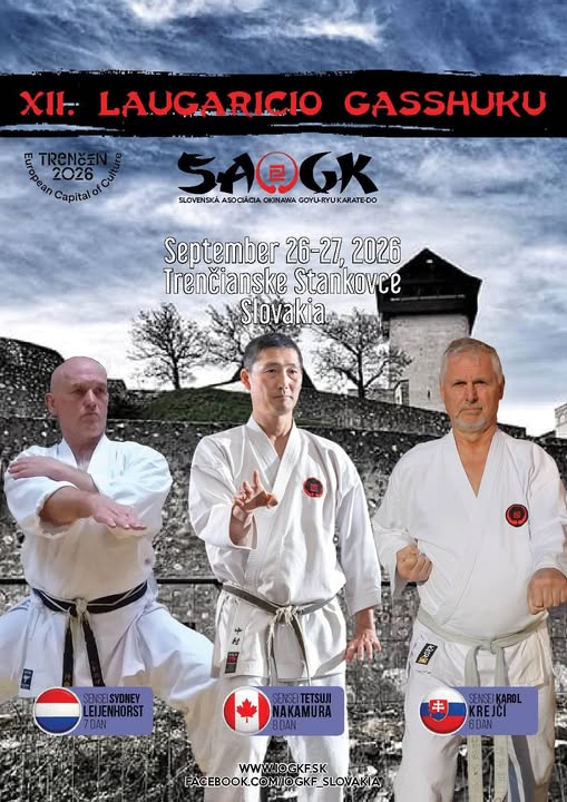 Location: Trenčianske Stankovce, Slovakia Dates: September 26-27, 2026 Instructors: Sensei Sydney Leijenhorst (7 Dan), Sensei Tetsuji Nakamura (World Chief Instructor), and Sensei Karol Krejci (6 Dan) Website: More information can be found at www.iogkf.sk